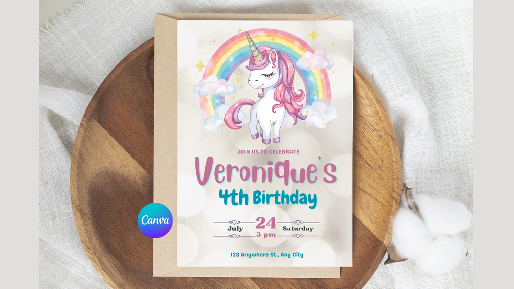 Make your child’s birthday extra magical with this Unicorn-themed birthday invitation! Designed with soft pastel colors, whimsical unicorn elements, and a playful layout, this invitation is perfect for unicorn lovers of all ages.